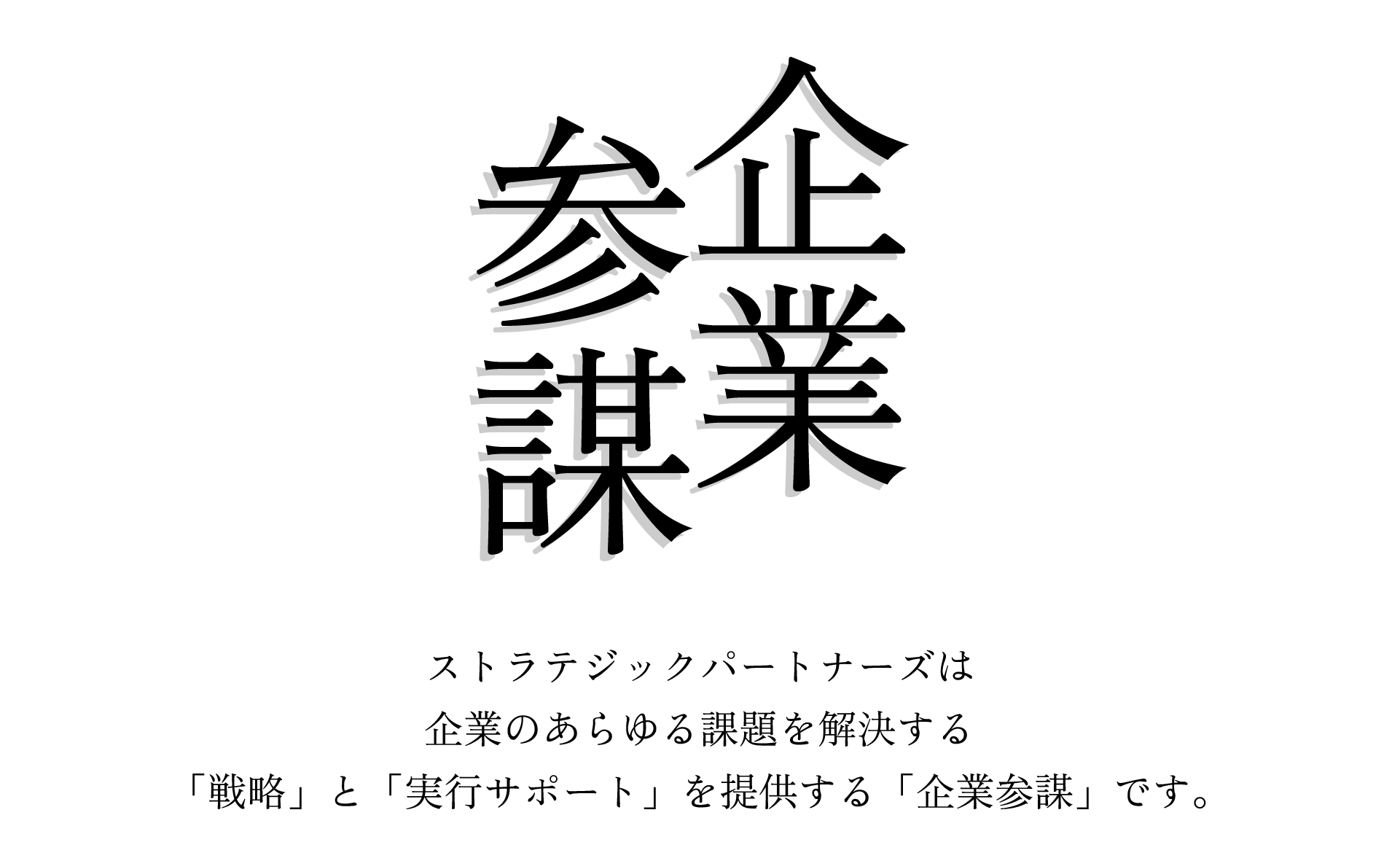 企業活動は「複雑系」と言われ、あらゆる要素が多くからみあうなかでの舵取りが業績に直結します。変化の激しい市場環境に対応するために出来ることは多種多様です。 そこにこそ「ストラテジックパートナーズ」の存在理由があります。戦略を理解できるからこそ、戦略の効果を最大限に発揮するためのプロダクト制作が可能であり、 プランニングされた戦略の効果を最大限に活用するための”実行”が実現できます。
